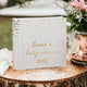 This treasured BAMBINO BY JULIANA® Baby Shower Keepsake Box offers an ivory finish with a silver foil 'Baby Shower' decal adorned with crystal pram, teddy bear, and rocking horse icons, and finished with grey pastel star details. The interior provides room to store special mementos and includes an ivory satin ribbon for closing the box.