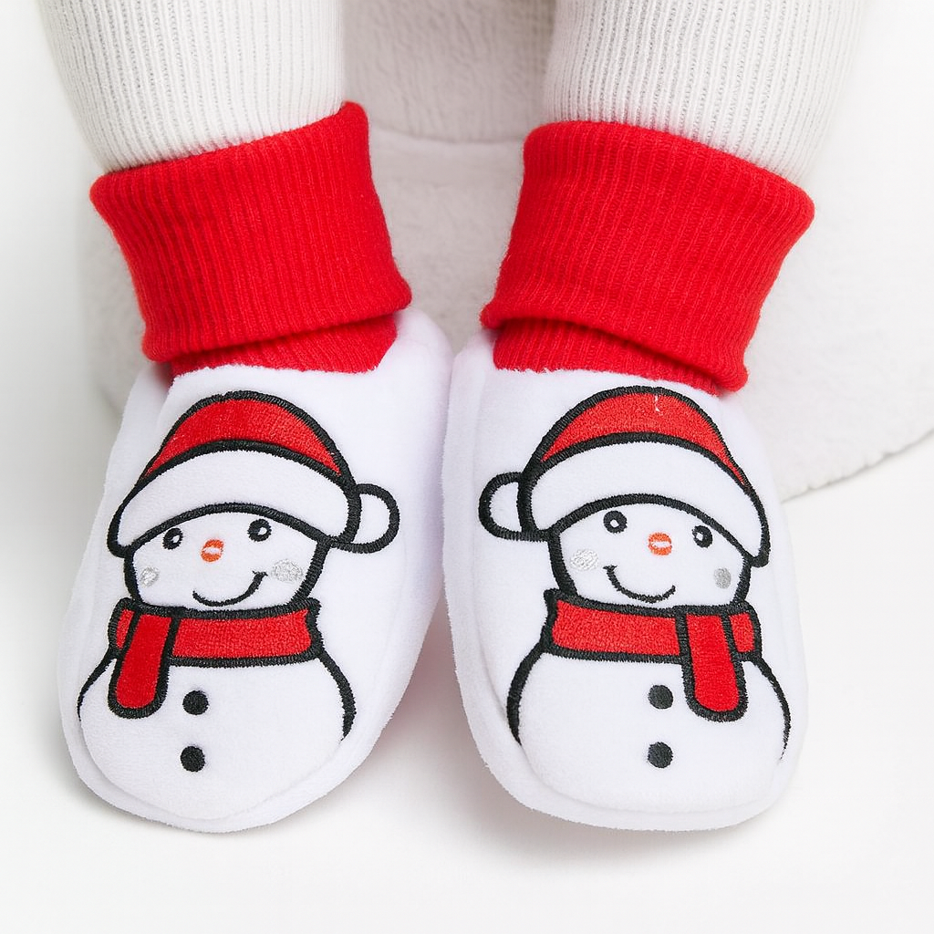 "Get ready to spice up your little one's wardrobe with our Snowman Booties! These cute and cozy baby booties feature a playful Snowman design, making them the perfect addition to your holiday attire. Perfect for keeping tiny feet warm during the Christmas season!"