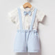 This stylish two-piece outfit is the perfect way to dress your baby boy this holiday season. Crafted from a soft knitted fabric in dusky blue, this outfit features an adorable reindeer print on the top, paired with cosy closed feet leggings. The Dandelion Dusky Blue Knitted Reindeer Outfit is sure to keep your little one comfortable and stylish.