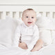 Keep your little one cozy and adorable in this playful hooded knit romper. Featuring a soft button fastening down the front and a charming faux fur trim on the hood, it’s perfect for chilly days. Available in blue or pink, this pramsuit suits both baby boys and girls, making outdoor adventures snug and stylish.