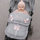 This pink polycotton footmuff with pink satin bows offers a comfortable and warm option for use on prams and buggies throughout the year. It can be easily converted into a pram, stroller or buggy liner, providing extra padding for added comfort.