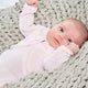 This knitted cardigan is perfect for layering over dresses or bodysuits. It features an intricate pearl button flower, and a two-button closure.