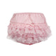Get your little princess ready for summer with these cute and stylish white and pink frilly pants. Perfect to wear with summer dresses, these pants will keep your baby girl comfortable and looking great.