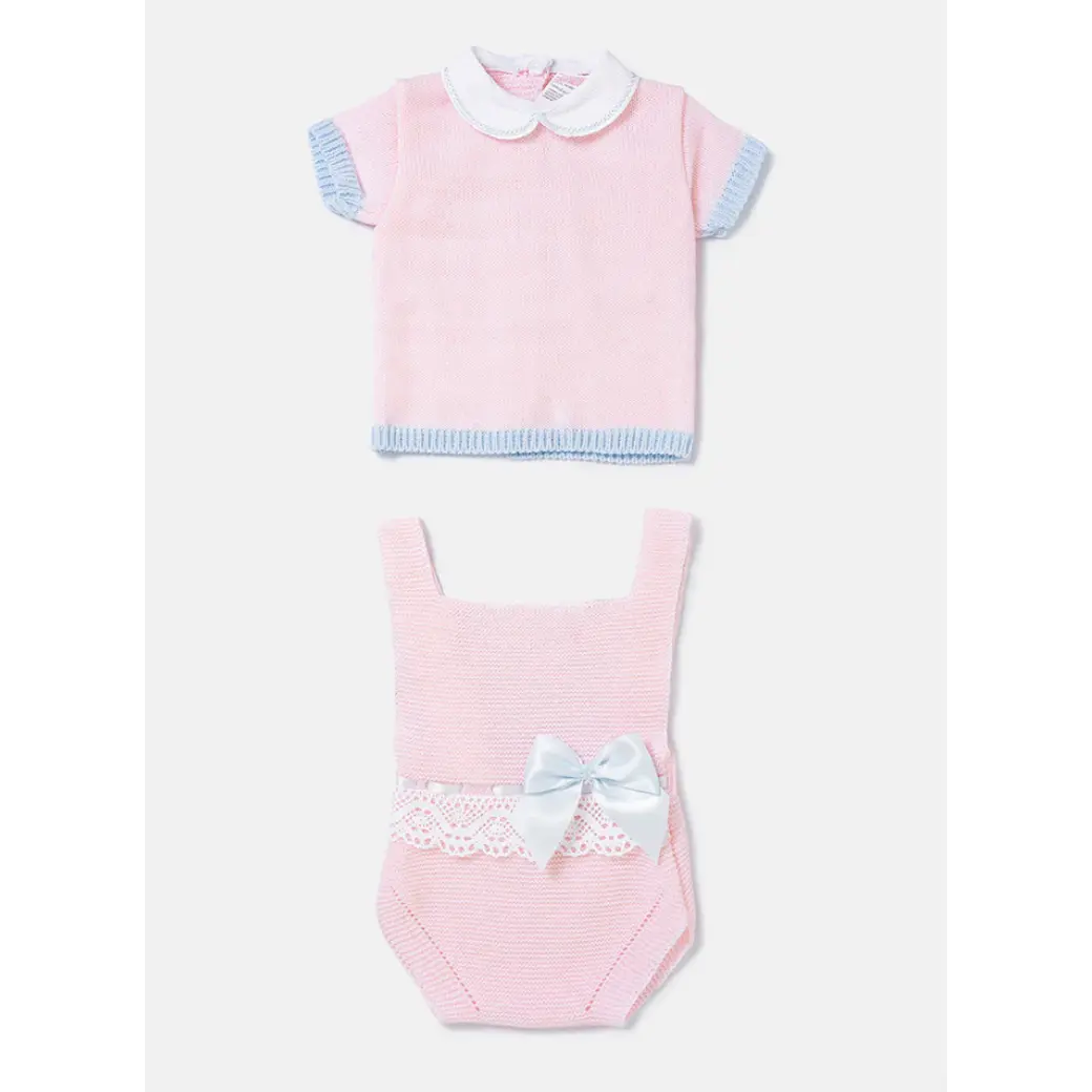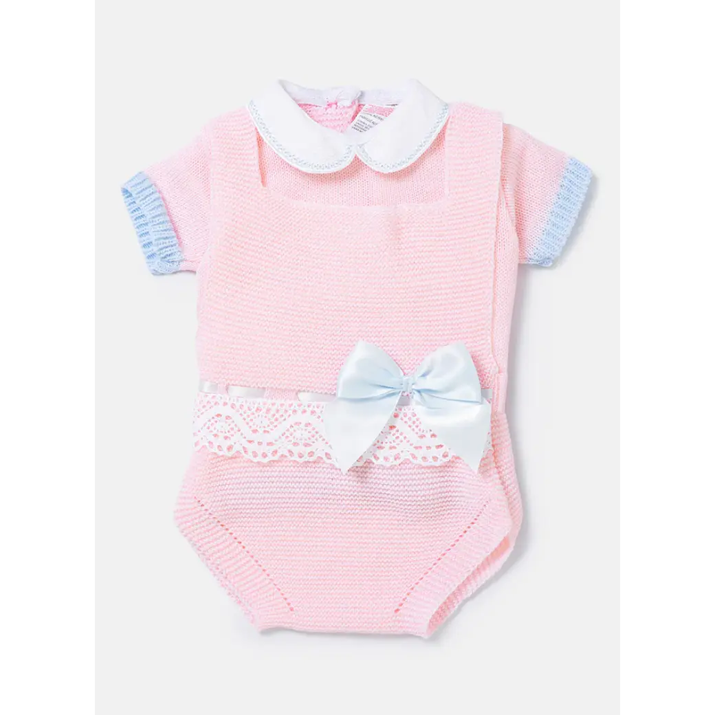 Adorable Spanish knit dungaree with matching top in soft blue and pink tones, perfect for little ones. This charming one-piece combines comfort with style, featuring traditional knit detailing that's both timeless and playful. Personalise it to make it truly special—add your child's name or initials for a unique keepsake gift. The gentle colour palette suits any skin tone, while the quality knit fabric ensures durability through playtime and beyond. Ideal for everyday wear, special occasions, or as a thoughtful present for a newborn or young child.