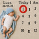 This set includes 20 luxury gold foil embossed milestone cards from 'Today I Am 1 Week Old' to 'Today I Slept Through The Night For The First Time'. Take a snap of your little one with each card and then mount the card and a 4" x 6" photo in the 20 page album complete with a personalisable caption for you to add the date, place and who was there.
