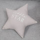 This 27cm x 27cm star-shaped Little Star cushion is crafted from beautiful linen with a silver script title. It's an ideal decor piece for a newborn's nursery or bedroom, perfect for cots, chairs, and sofas. Washing by hand is advised.