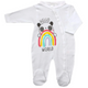 This set of two sleepsuits offers an enchanting floral pattern with a hint of plum, all crafted from 100% cotton. It makes a splendid gift for a newborn baby girl or an ideal outfit for a celebratory occasion. It is part of a unified collection.