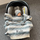 Our NEW blue stripy blanket and matching pom pom hat makes the perfect gift for baby boys. The blanket is personalised for FREE with your colour choice and embroidered with the baby's name or initials. Ideal for trips out in the car seat and pram, keeping baby warm on those cold days.