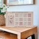 DISNEY®'s Mickey "My First Year" photo frame is a treasured keepsake specifically made for newborn sons. The baby blue square frame is complimented by a pencil-style printed image of Mickey with a "My First Year" sentiment in gold lettering. Twelve small, square apertures provide space for parents to proudly display images, monthly photos - from one month old to their first birthday – either freestanding or on the wall.
