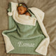 Our Personalised Sage Green Cable Knit Blanket is ideal for keeping your baby warm and cosy. Made from soft acrylic, the sage green cable knit blanket features fun pom poms and is personalised for a unique touch. Perfect for a special baby shower gift.