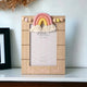 This gorgeous wooden photo frame from the Petit Cheri Collection by CELEBRATIONS® is the perfect addition to any living space. Featuring an adorable pink wooden frame with a single, portrait aperture, this freestanding frame also boasts a woven rainbow macrame along with a wooden cloud plaque with a Hello Little Lady sentiment and tassel for a complete look.