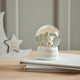 A bat-cat gold glitter snow globe by HOCUS POCUS NOVELTIES®. This enchanting snow globe encapsulates the joy of spooky season yet can be enjoyed as a desk accessory all year round. The glass snow globe contains a resin, black bat-cat upon a stack of spooky books. It sees gold glitter fall upon the bat-cat when shaken. The snow globe is packaged in a black and white printed box.