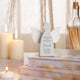 White speckled in colour and made from polyresin. At the heart of this piece are paw embellishments and the heartwarming words, ‘My angel has muddy paws, a wet nose and a wagging tail’. In black, these sentimental words instantly catch the eye and complete a loving tribute.