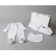 The Giraffe 6 Piece Gift Set is perfect for any new parent. It comes with a giraffe print romper and accessories, plus a polka dot vest with soft pastel tones of lemon, white, and grey. The perfect unisex baby gift, it comes in a convenient gift bag for easy gifting.