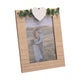 - White wooden plaque with light grey central plate - Green eucalyptus leaf and pink flower design - White typewriter style font MARRIAGE RULES title - Natural finish wooden hearts with MR & MRS titles - Rustic twine hanger