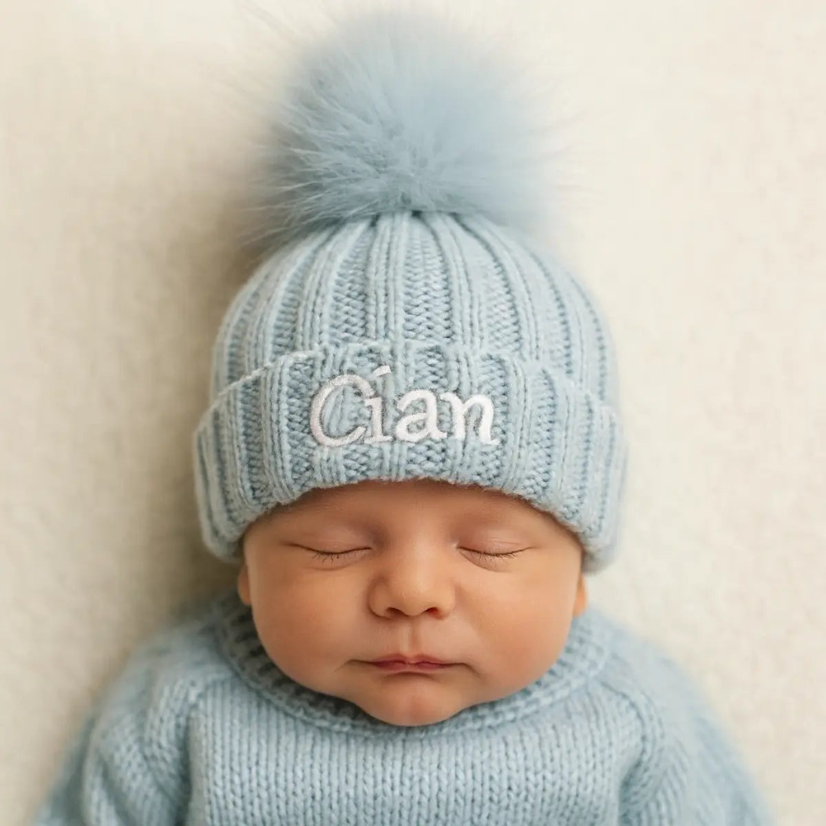 Keep your little one cozy and cute with this personalised Blue Hat with Glitter Pom Hat. Designed for newborns up to 12 months. Perfect for snuggly comfort and adorable style all season long!
